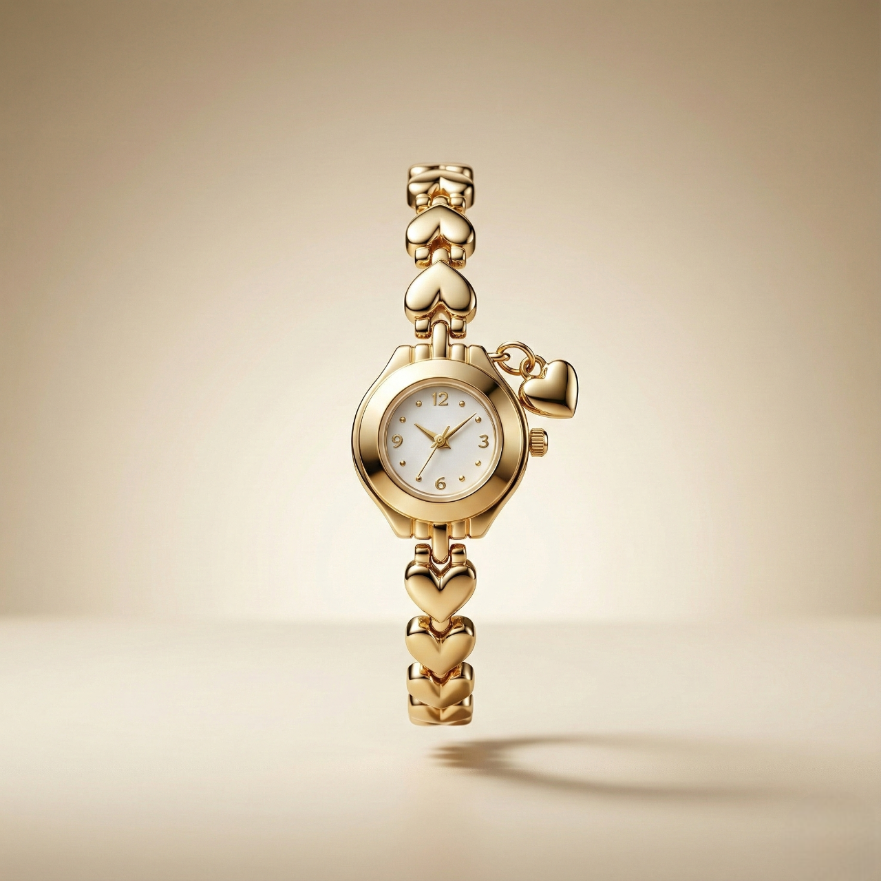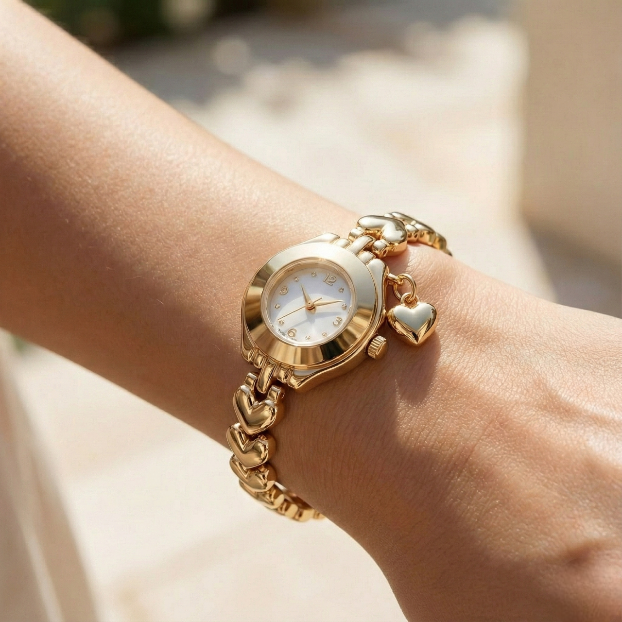 Minimalist Gold Detaylı Kalp Figürlü Kadın Saat
