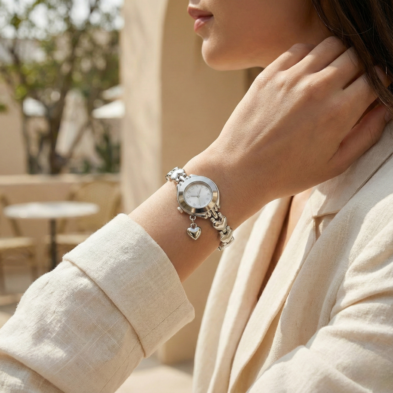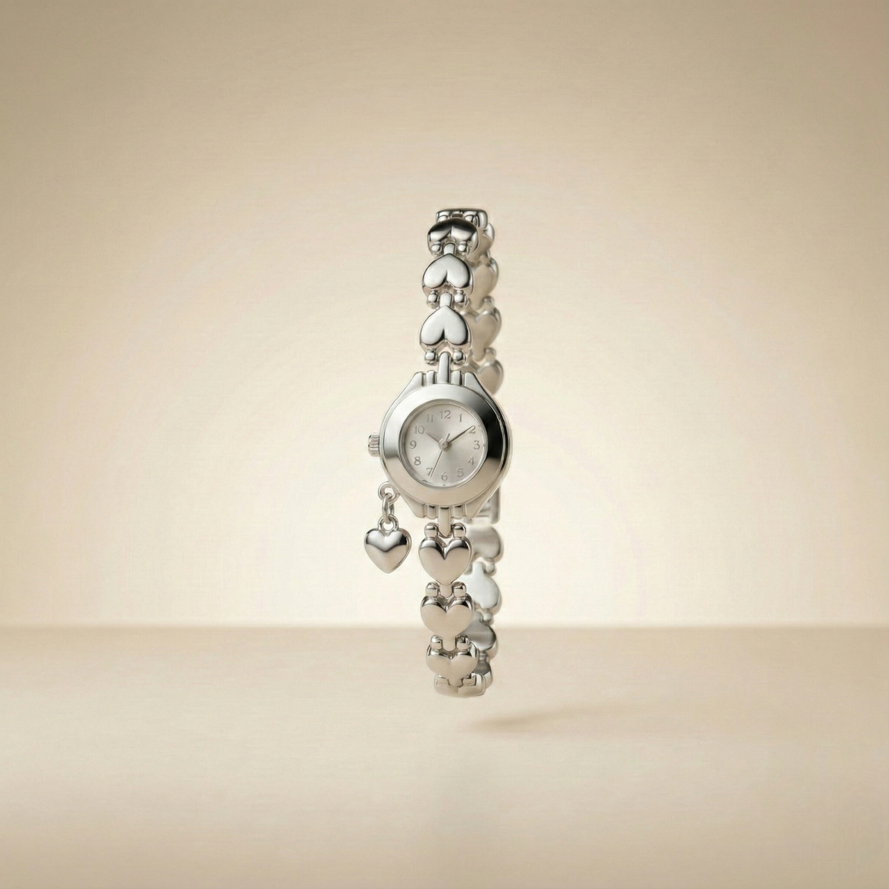 Minimalist Silver Detaylı Kalp Figürlü Kadın Saat