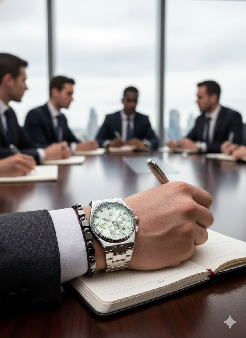 İster resmi bir toplantıda, ister günlük bir kahve molasında... AuroraTime™ her kombininin tamamlayıcısı. Şık ve zamansız tasarımıyla her ortamda tarzını konuştur. Gardırobunun en özel parçası olmaya aday.