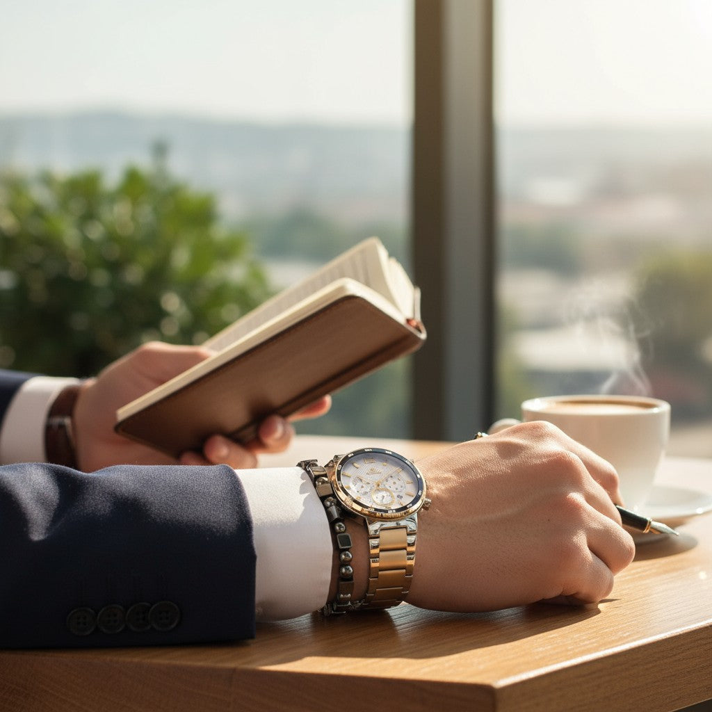 İster resmi bir toplantıda, ister günlük bir kahve molasında... AuroraTime™ her kombininin tamamlayıcısı. Şık ve zamansız tasarımıyla her ortamda tarzını konuştur. Gardırobunun en özel parçası olmaya aday.