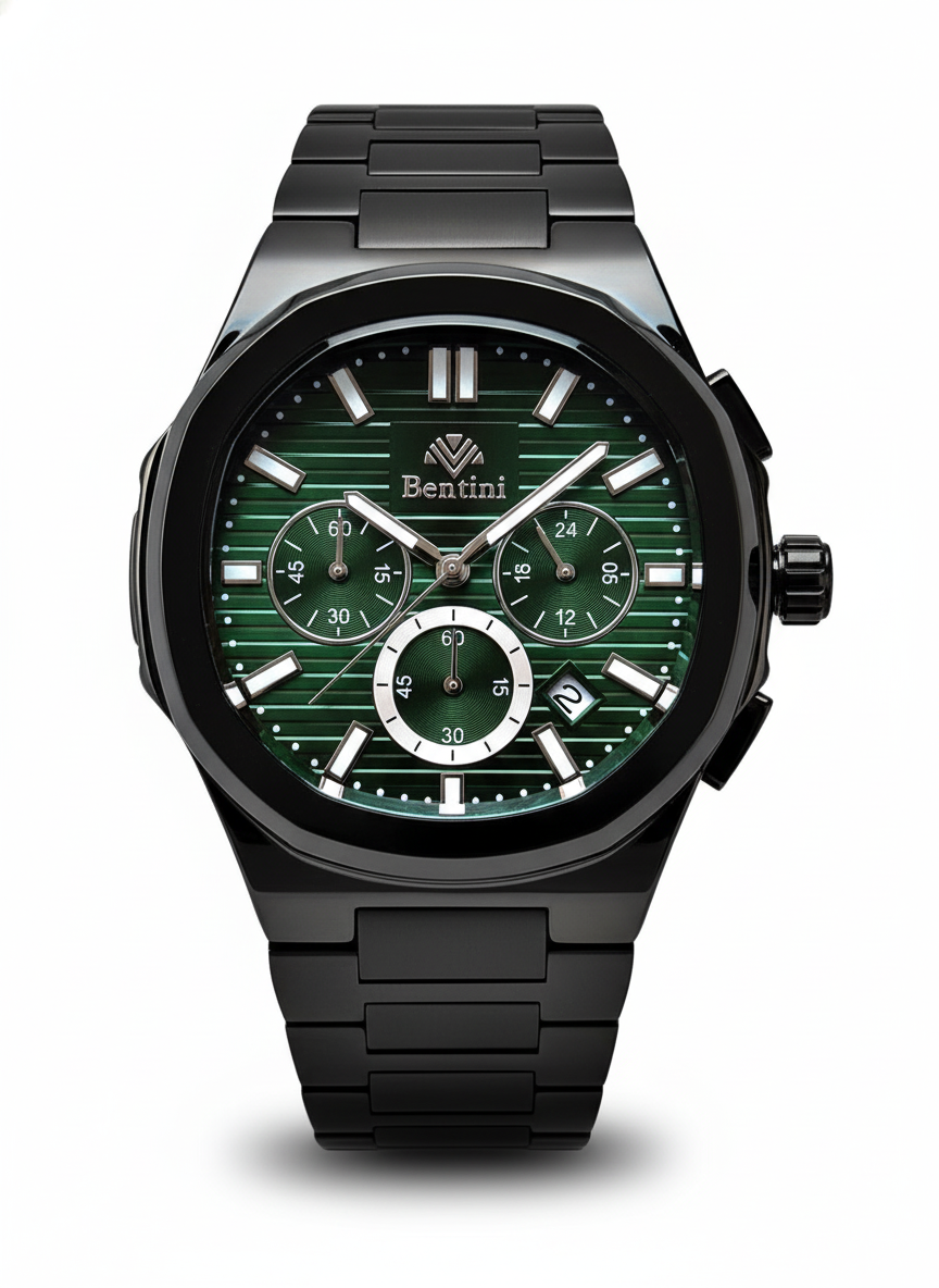 AuroraTime ile tarzınızı bir üst seviyeye taşıyın. Çarpıcı yeşil kadranı ve şık siyah kasasıyla her ortamda dikkatleri üzerinize çekin. Hem resmi hem de günlük kullanım için ideal, hassas zaman işleyişiyle daima bir adım önde olun.