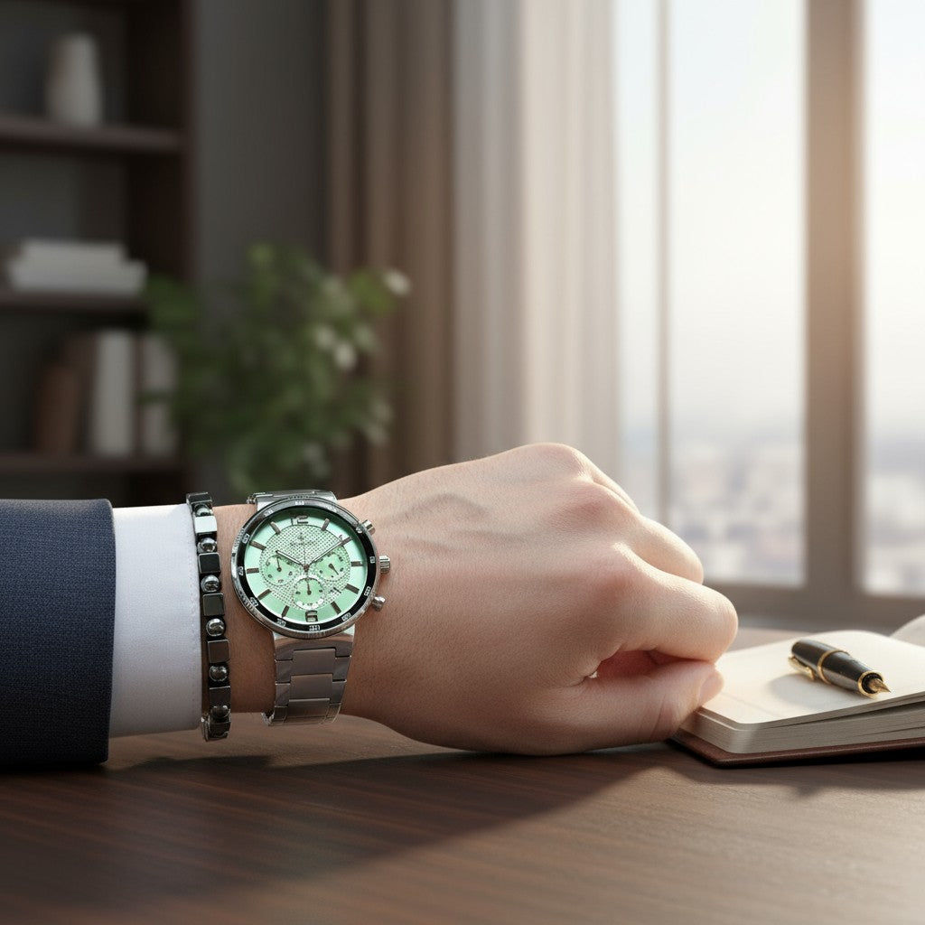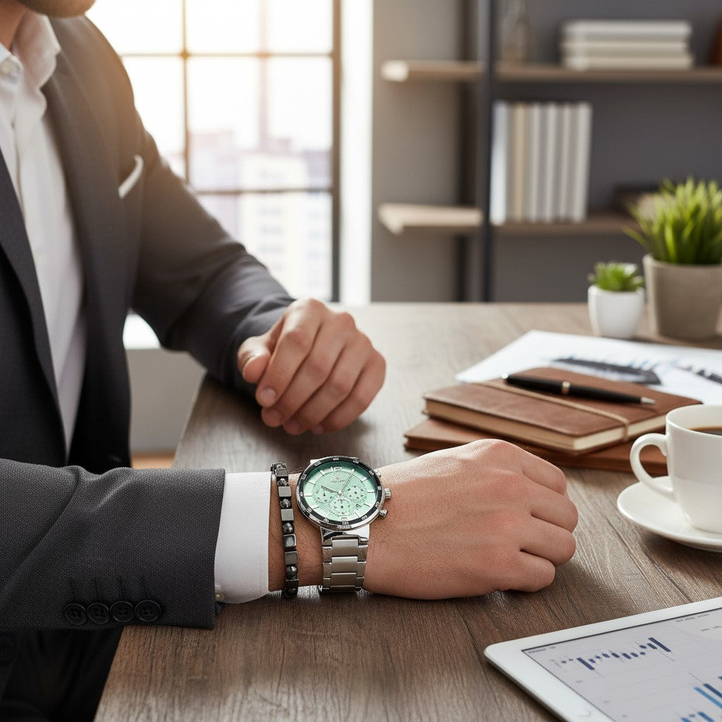 İster resmi bir toplantıda, ister günlük bir kahve molasında... AuroraTime™ her kombininin tamamlayıcısı. Şık ve zamansız tasarımıyla her ortamda tarzını konuştur. Gardırobunun en özel parçası olmaya aday.