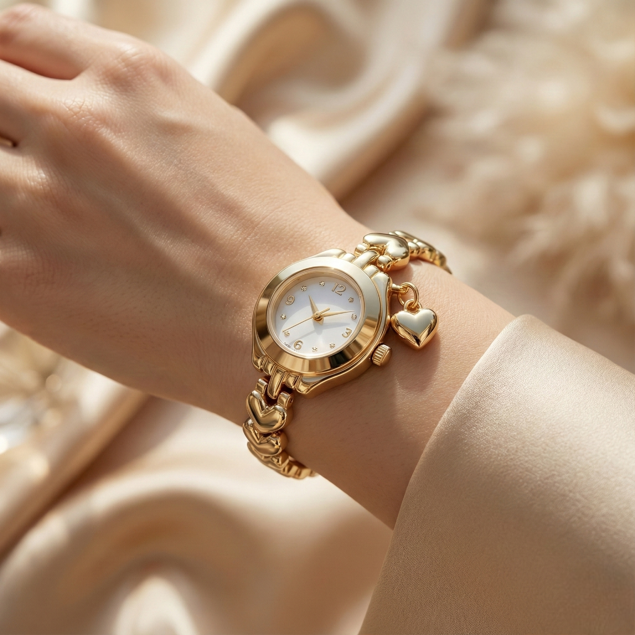 Minimalist Gold Detaylı Kalp Figürlü Kadın Saat