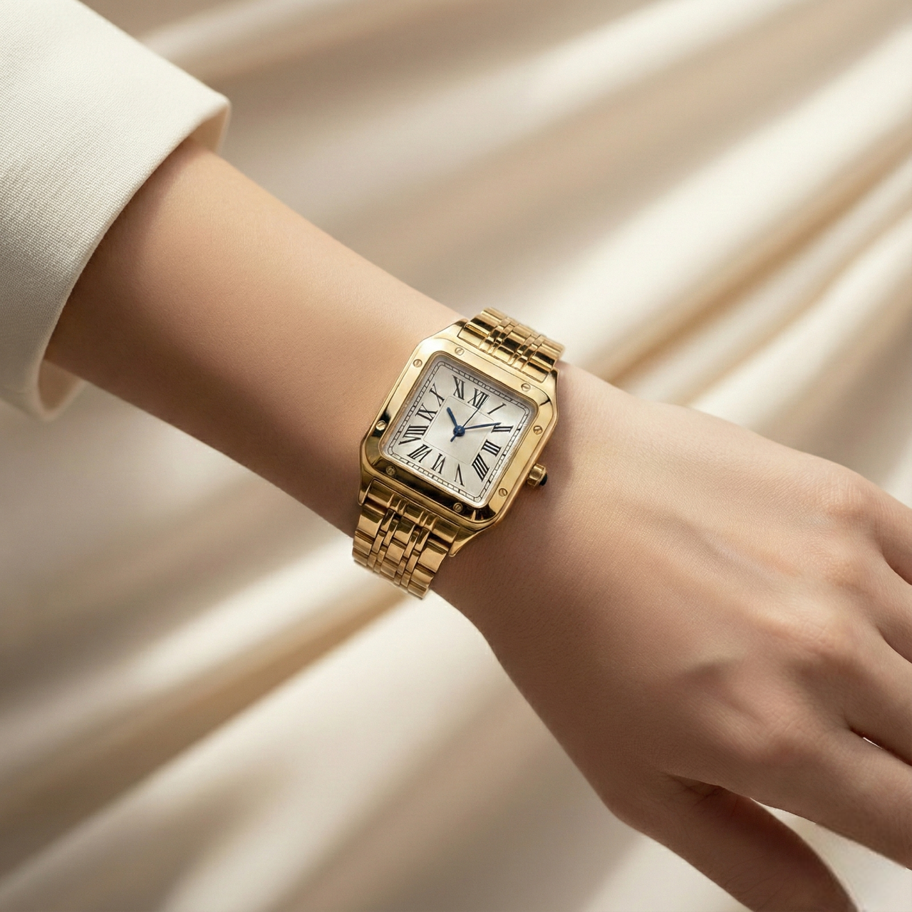 Kare Kadranlı Gold Detaylı Kadın Saat